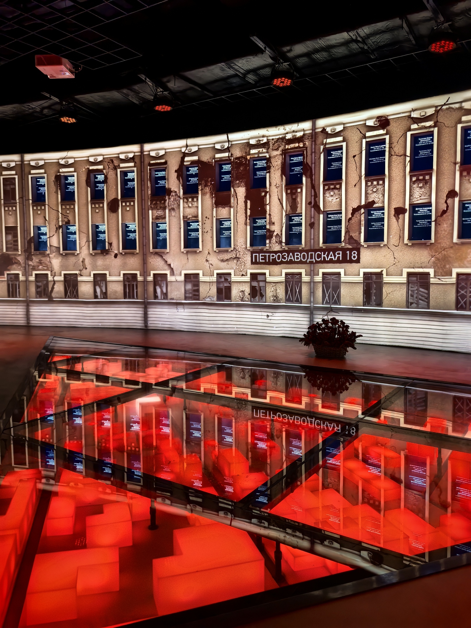 За дверью посетителей встречает торжественный зал, напоминающий пантеон или часовню. С помощью современных технологий здесь показана судьба каждого дома в квартале. Вы увидите, как день за днем, месяц за месяцем менялась жизнь осажденного города, запечатленная в судьбах его улиц и зданий.