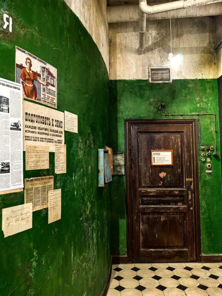 Путь к истории лежит через воссозданный коридор ленинградской коммунальной квартиры. Его стены хранят подлинные, выцветшие от времени соседские записки блокадных лет. Чтобы сделать шаг в прошлое, позвоните в дверной звонок.